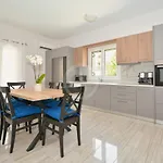 Chrysilia Apartamento está amueblado con sofá con instalaciones modernas, como TV de pantalla plana con canales vía satélite. El Chrysilia Apartamento cuenta con 2 dormitorios. Esta propiedad incluye 2 cuartos de baño con ducha a ras de suelo y un inodoro separado de la ducha. El cuarto de baño dispone de secadores de pelo, artículos de tocador para huéspedes y toallas.